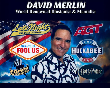 David Merlin performs all types of illusions, from the grandest stage pieces to more intimate magic. Every show involves the audience in every way possible, using both comedy and illusions, making them a part of the experience.
