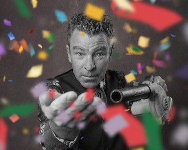 Whether he’s kicking coins into his eye socket, eating flaming marshmallows or juggling plastic grocery sacks in slow motion, what audiences can’t get enough of are his hilarious, self-deprecating asides: “All this talent... and I’m also a notary”.